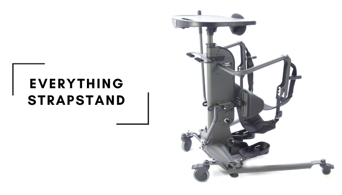 The EasyStand StrapStand is a strap-style stander. The StrapStand lifts you directly from your wheelchair, bed, or other seated surface into the standing position – no transfers necessary!